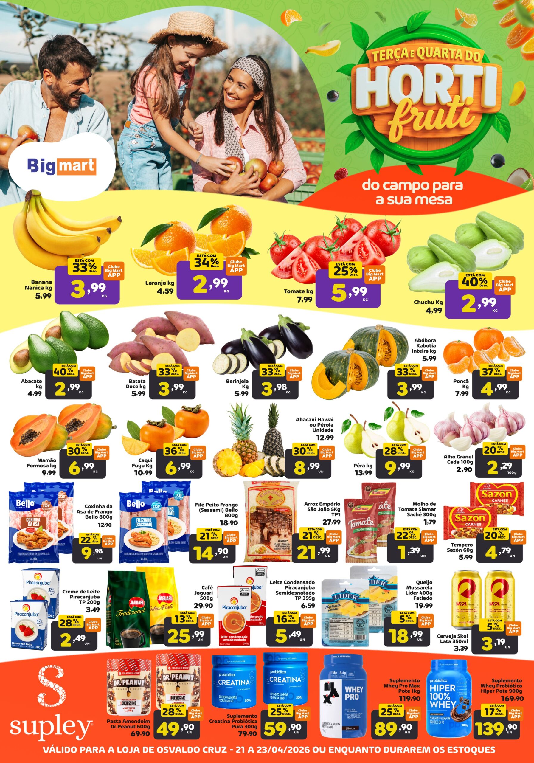 Ofertas válidas de 21 a 23/04/2026 para a loja de Osvaldo Cruz ou enquanto durarem os estoques.